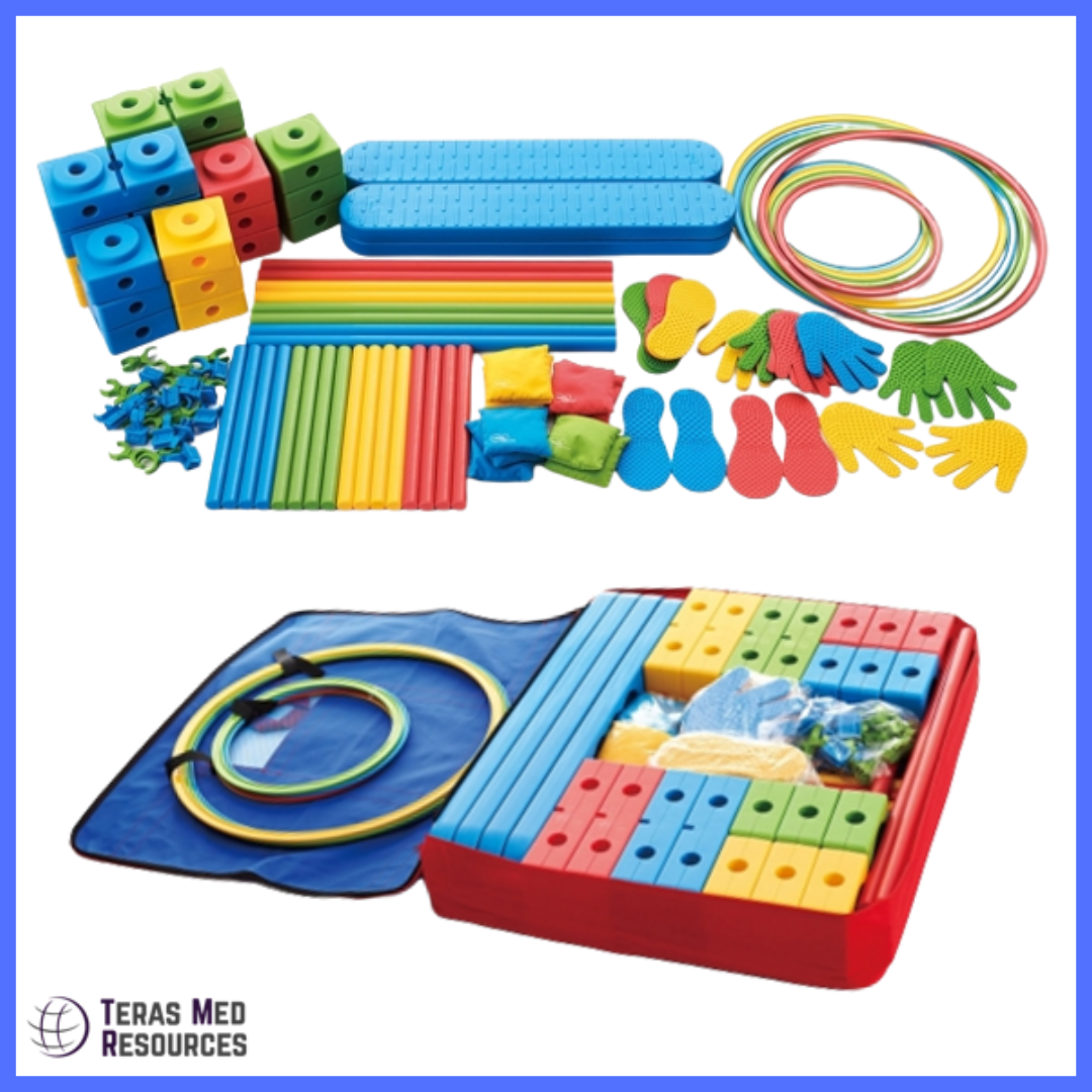 ✅ Comprehensive Set for Motor Skill Development: A combination of bricks, poles, hoops, beanbags, balance beams, and other components, designed to be used separately or together in creative activities that enhance physical skills.